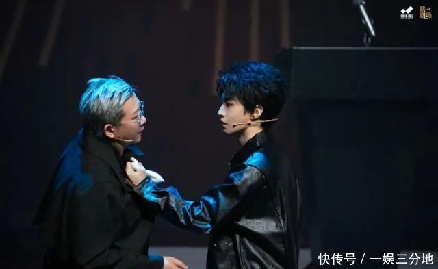 《趁世界还年青》剧照。摄影:洋枝甘璐 澎湃新闻: 《趁世界还年青》有些炫酷、嬉闹的“皮儿”,但是“瓤儿”我觉得还是挺严肃的。 饶晓志: 没错,其中是有严肃的讨论,主题上它很严肃——AI带来的变化我们都已经切身感受到了,甚至会觉得有些恐慌——但就这部戏而言,我们需要它在一种轻松诙谐的调性下前行,包括我们给出了一个更具荒诞感的“节目录制”现场氛围,这会让观众更有一种沉浸的感受,特别是对第一次看话剧的观众而言,可能更容易带入剧场看戏的氛围。 戏剧是有意义的,也是一个适合喜欢讨论严肃问题的场合或者场域,只是说我们要怎么设计这个打开方式。对于年轻的观众而言,我希望他们走进剧场,对话剧的第一印象不是高高在上的,不是拒人于千里之外的。让小凯来主演这部戏,不只是大家对他话剧舞台首秀的第一印象,也有对戏剧本身第一印象的双重考量。 这是一种“双向奔赴” 澎湃新闻: 你如何看待戏剧观众群体的变化。以及近些年来明星纷纷参演话剧这一现象,你认为会对戏剧生态会产生怎样的影响?再请具体展开讲讲。 饶晓志: 我们做了这么多年的戏剧,一直也还在做,实际情况却是观众在一批批地迭代,你会失去过去的一些观众,或者说你想要有更多的观众来关注到你,当然就要去适应一些新的变化。归根结底,相对于电影或者电视剧、网剧、短剧来说,戏剧观众的受众群体肯定是很小的。 我们通过跟这些新的观众打交道,如果说他们中间有一小部分人,哪怕看完场话剧走出剧场只有一个观众,从此开启了一扇门,觉得进剧场看戏是一件很有仪式感、很有意思的事情,那么未来某一天,或许不是小凯出演的戏,或许不是我执导的戏,TA也想去看看,这不好吗?更有甚者,你也看到了这些观众还那么年轻,如果从此能爱上剧场,把看戏当成是一种爱好,进而想从事这个行业,那就更好了。我们小时候不也是如此吗?可能就是看了某部戏,才喜欢上了剧场,大家都一样。 你提到近些年很多明星开始演话剧,也不稀奇,实际上如果去查资料的话,这早就有,一直也没断过。当然像小凯这样的演员,他是1999年出生的,成名很早,当他成长到一定年纪,他的阅历包括对表演的理解也在更加丰富,他来演话剧是顺其自然、水到渠成的事情。 那么反过来说,出演话剧和他办演唱会、出演影视剧肯定也是不一样的。他要在舞台上从头到尾不NG地表演,这种酣畅淋漓的表演经历,对他自身而言也提出了一种更高的要求,他必须注意力高度集中,也要打破一些平时在片场拍摄的习惯。尤其是他这次还一人分饰三个角色,相信随着这部戏的不断打磨——话剧舞台的魅力,就在于每一场和每一场都是不一样的,这对演员绝对是很好的锻炼。 就像我刚刚强调的,我也说了说这是一种相互的,说是“双向奔赴”也可以。因为不管是从演员的角度,还是从剧团的角度,无论是国营的还是民营的,我们都有市场的需求和定位,我们都要生存,这无可厚非。 澎湃新闻: 首演之后你的感受如何?这次你既当导演又当演员,这种双重身份给你带来了怎样的体验? 饶晓志: 很棒。你知道我们这次都没有公开的彩排场,所以首演便是第一次真正地见观众。现场的氛围太好了,我们都没想到大家能这么热情,包括演出后大家一起坐下来总结,也都很感动。 这轮演出对我而言的特殊性在于我除了当导演,也得上去饰演角色。这让我没办法再像过去那样,坐在观众席最后面去观察整个现场,去感受整台戏的节奏包括各方面的情况。这件事情,这次是我们的艺术总监在帮着做。戏剧有意思的地方也在于它是在做加法,第一天(场)有什么不足,第二天(场)马上就能修正,我们包括观众在内可以一起让这部戏向更好的方向去努力。